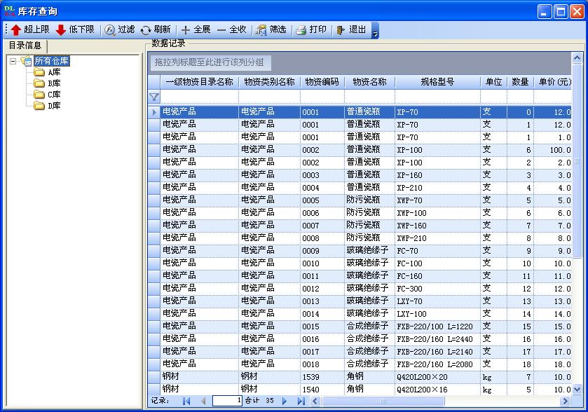 库存查询中加入上限、下限设置。用于查询库存中物资超过、低于设置数据的物资信息。该功能可以迅速的判断是否要进行采购。